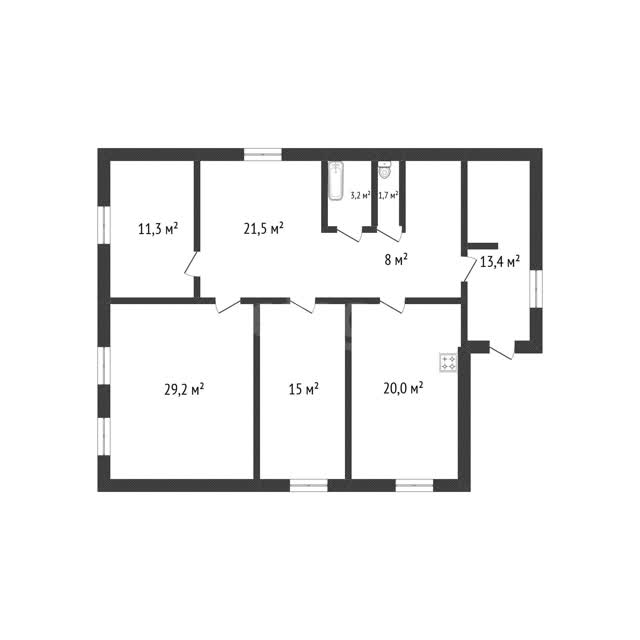 В доме проведены все необходимые коммуникации: центральное водоснабжение и центральная канализация, отопление — на твердом топливе. Санузел находится внутри дома.